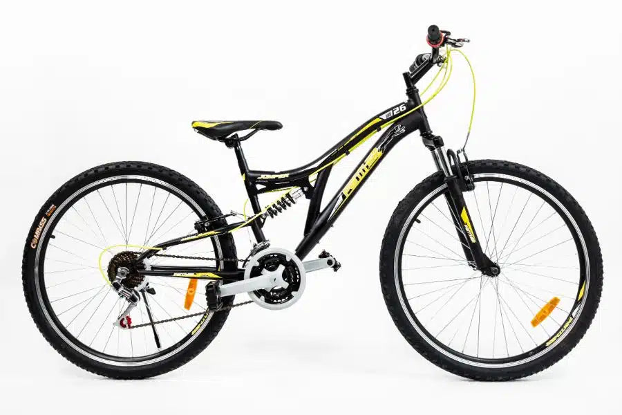 אופניים בעלי שלדת שיכוך מלא נוחה במיוחד עם מושב וכידון מתכווננים